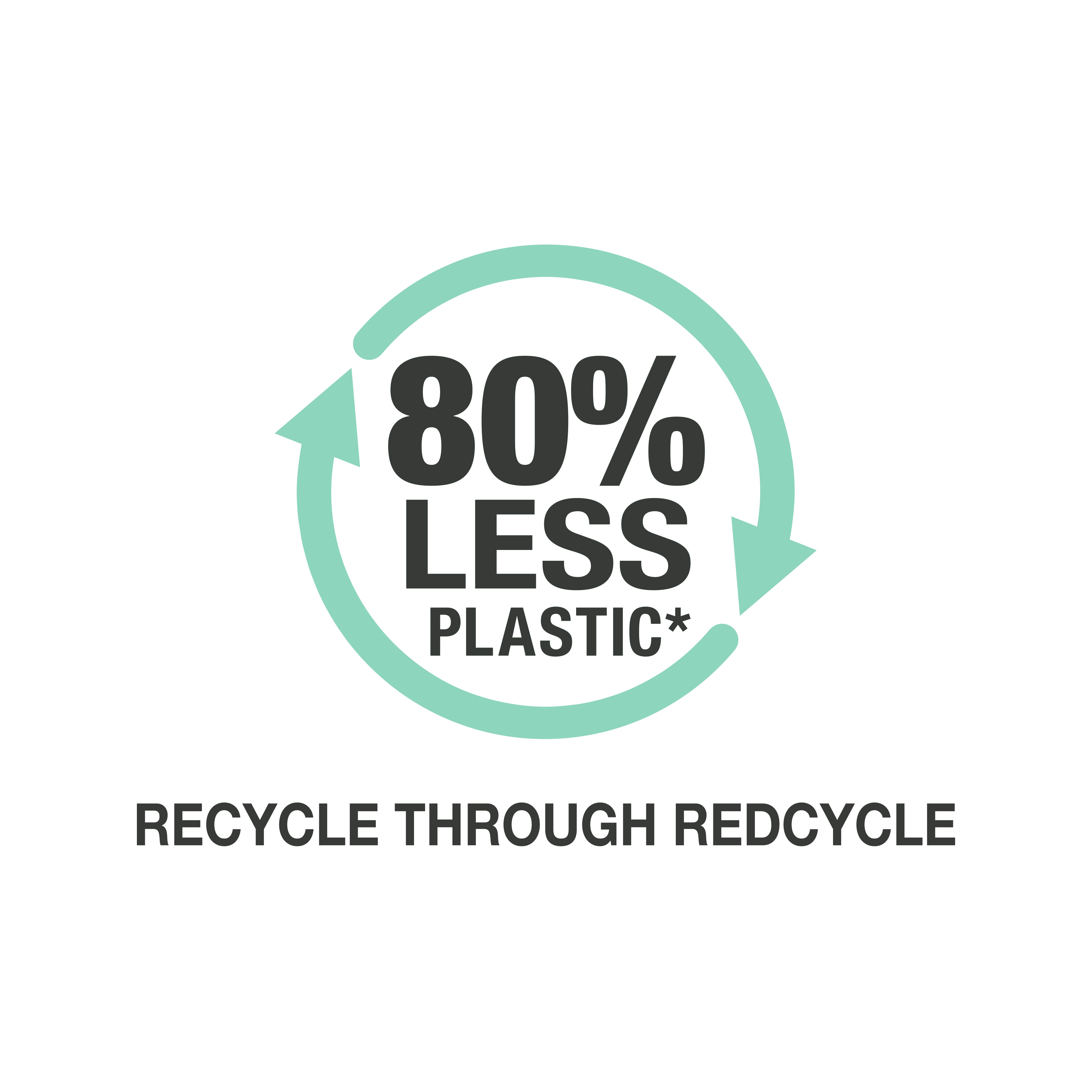 Smaller pack sizes mean we can fit more into a truck, which means fewer trucks on the road and fewer emissions!